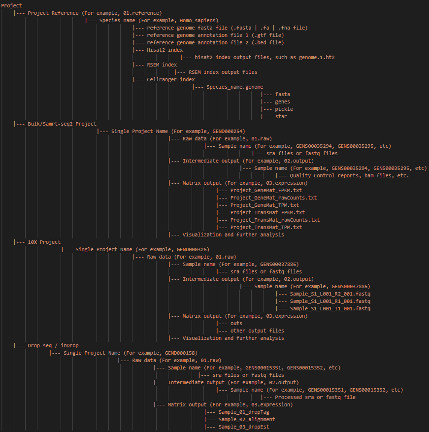 Gene Expression NebulasGENtoolkit provides powerful pipelines which can handle both bulk and single-cell (10X Genomics, Smart-seq2, Drop-seq and inDrop) RNA-seq data. All gene/transcript expression profiles deposited in Gene Expression Nebulas are processed based on GENtoolkit. GENtoolkit is composed of two main parts which correspond to upstream and downstream analysis pipelines respectively. Specifically, upstream analysis module includes 4 steps, 'index building', 'quality control', 'read alignment', 'gene expression quantification', while downstream analysis module includes 2 main steps, 'analysis of gene expression profiles' and 'visualization of analysis results'. Raw data in the format of 'sra' or 'fastq' (single-end or paired-end) are both supported for further gene/transcript expression profiling. According to the needs of users, it is accessible to perform gene expression analysis in all or part samples from a dataset.