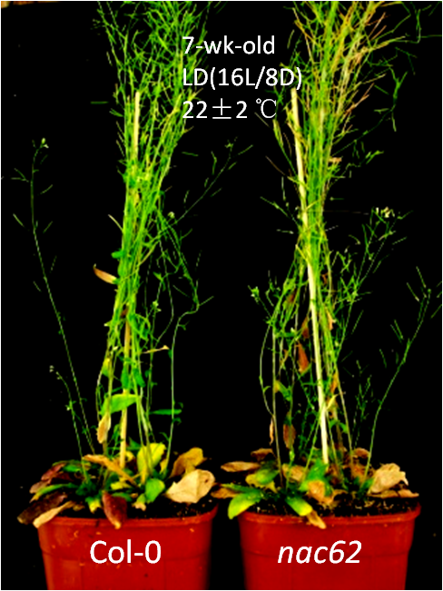 | | nac62 mutant exhibited slightly Early senescence. | |